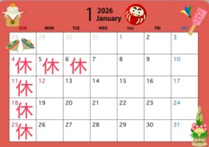 1月 お休みのお知らせ